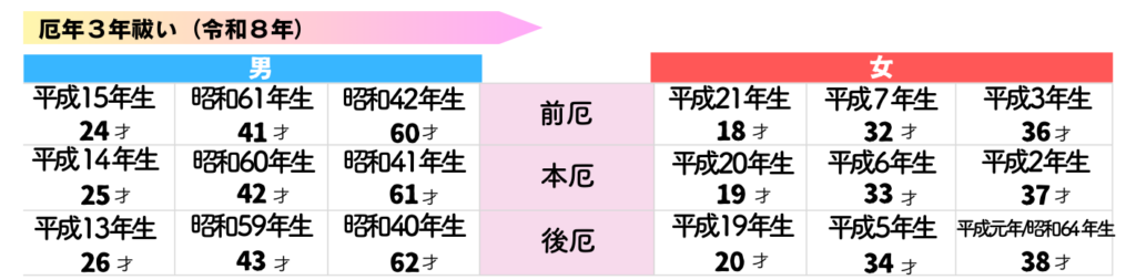迎春にあたり厄年の⽅は